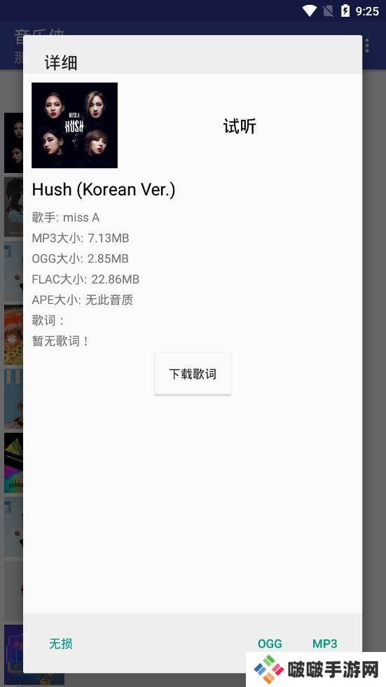 音乐侠app测评1、可按照歌名、歌手进行搜索;